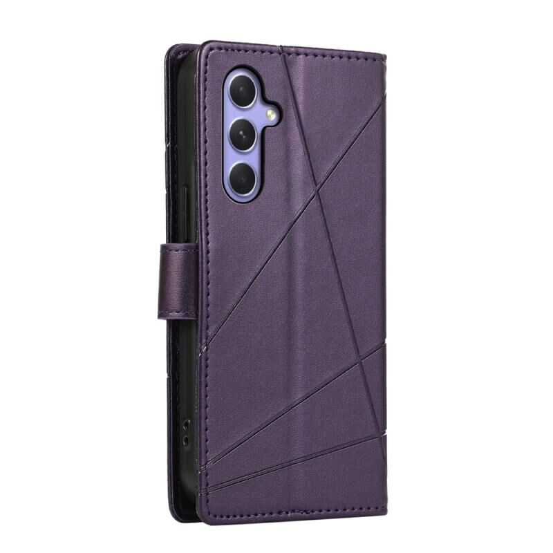 Θήκη τηλεφώνου Samsung Galaxy A55 από γνήσιο δέρμα PU με ανάγλυφη υφή και λεπτομέρειες γραμμής (Μαύρο)