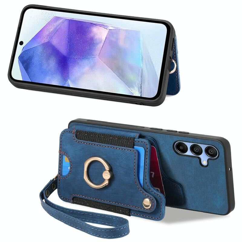 Για Samsung Galaxy A55 Ρετρό δέρμα αίσθηση δαχτυλίδι πολυ-κάρτα πορτοφόλι υπόθεση τηλεφώνου (Μπλε)