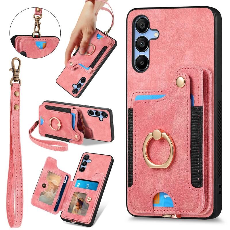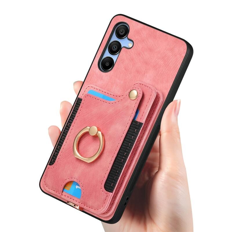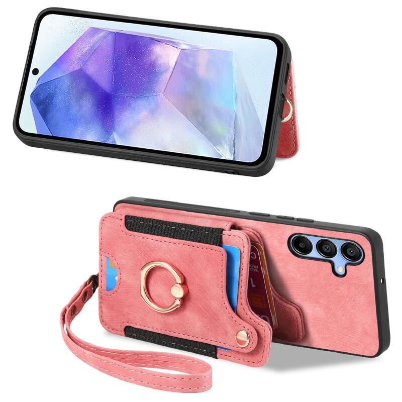 Για Samsung Galaxy A55 Ρετρό δέρμα αίσθηση δαχτυλίδι πολυ-κάρτα πορτοφόλι υπόθεση τηλεφώνου (ρόζ)