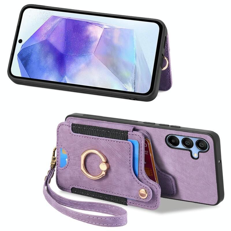 Για Samsung Galaxy A55 Ρετρό δέρμα αίσθηση δαχτυλίδι πολυ-κάρτα πορτοφόλι υπόθεση τηλεφώνου (Μωβ)