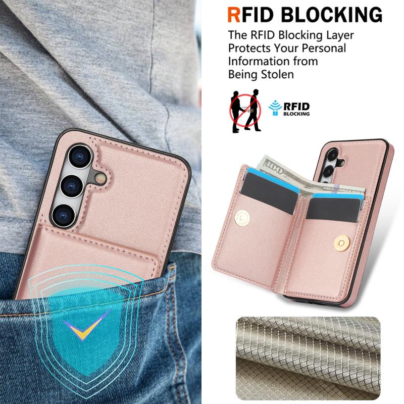 For Samsung Galaxy A55 RFID Anti-theft Card Ring Holder Phone Case(Rose Gold)