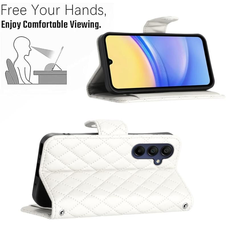 Για Samsung Galaxy A55 Rhombic Texture Flip δερμάτινη θήκη τηλεφώνου με κορδόνι (Λευκό)