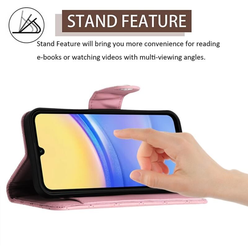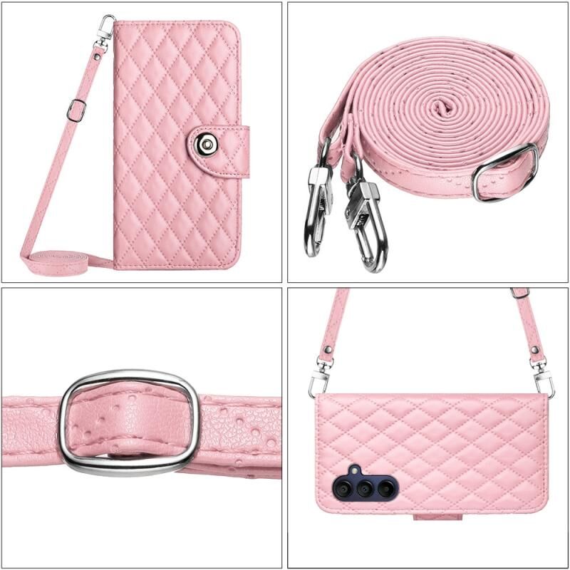 Για Samsung Galaxy A55 Rhombic υφή Flip δερμάτινη θήκη τηλεφώνου με μακρύ κορδόνι (ροζ)