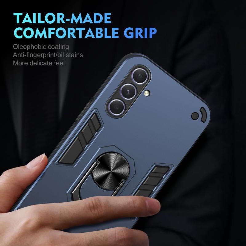 Θήκη κινητού τηλεφώνου για Samsung Galaxy A55 ανθεκτική στις κρούσεις με μεταλλική βάση δακτυλιδιού (Μαύρο)