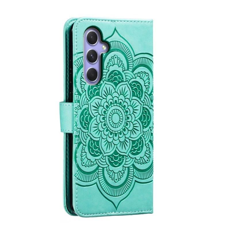 Για Samsung Galaxy A55 Sun Mandala ανάγλυφο μοτίβο τηλέφωνο δερμάτινη θήκη (πράσινο)