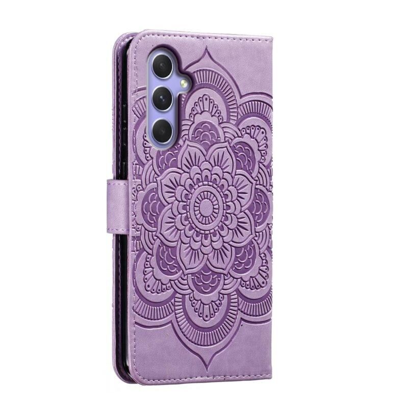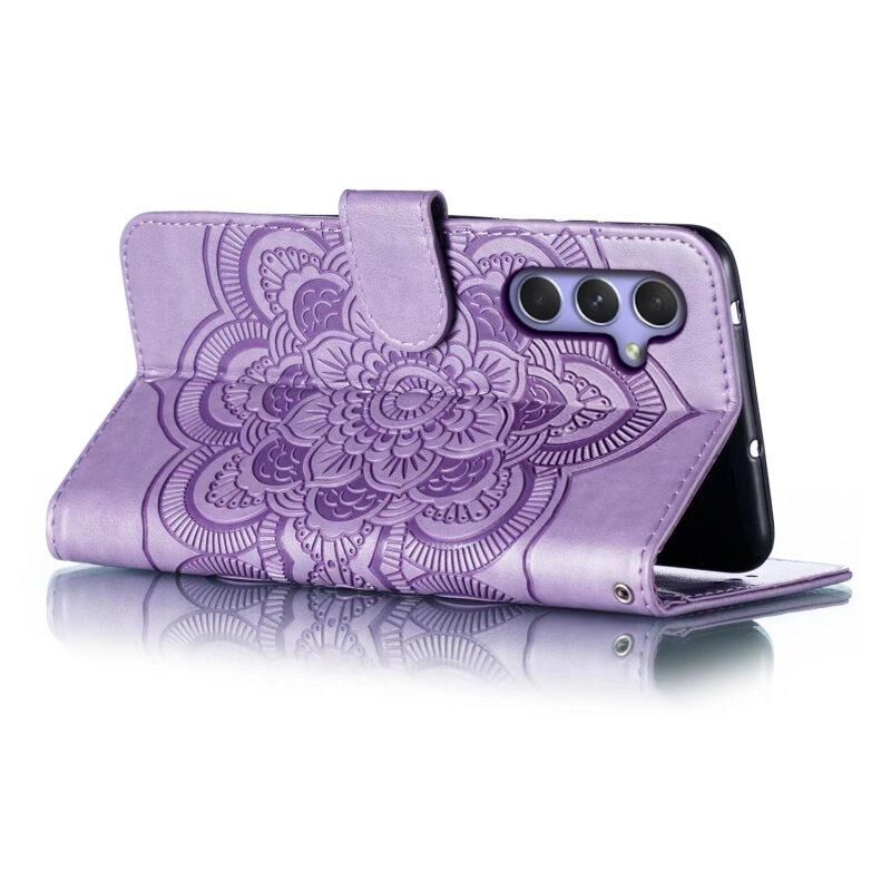 Για Samsung Galaxy A55 Sun Mandala ανάγλυφο μοτίβο τηλέφωνο δερμάτινη θήκη (μωβ)