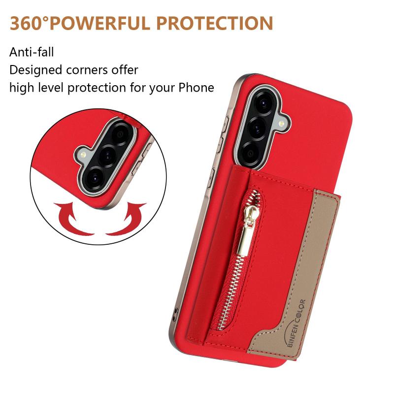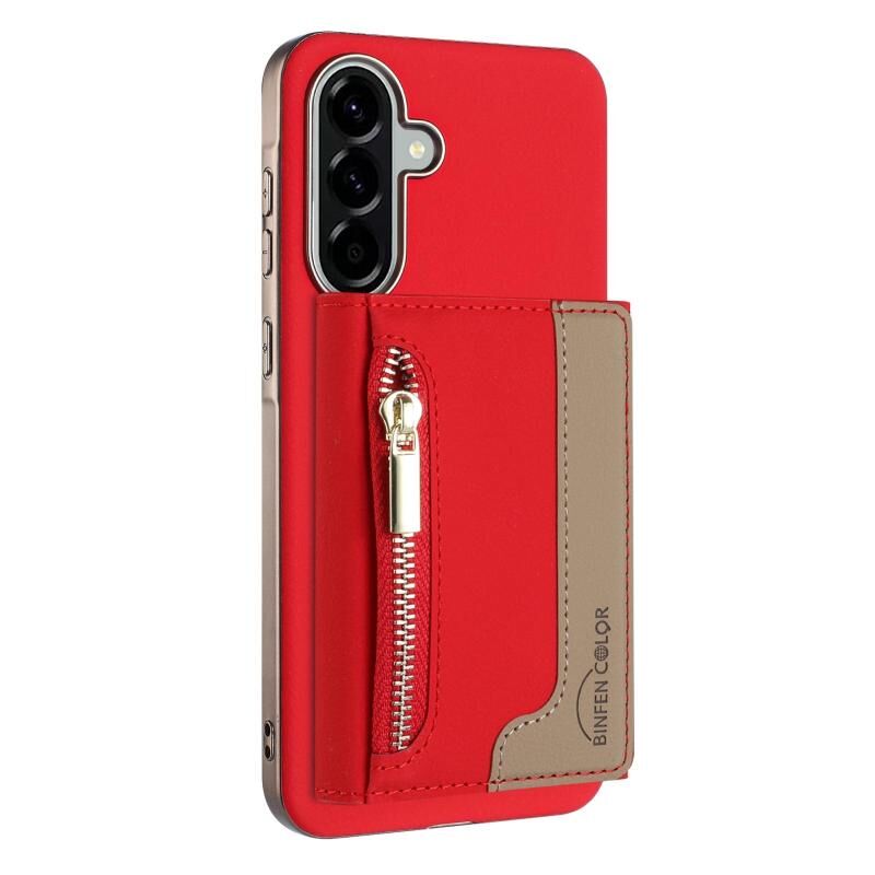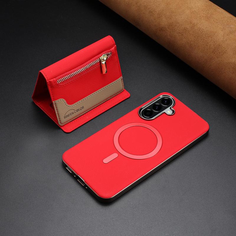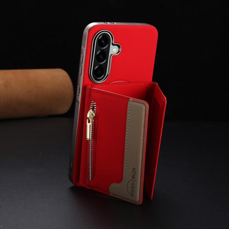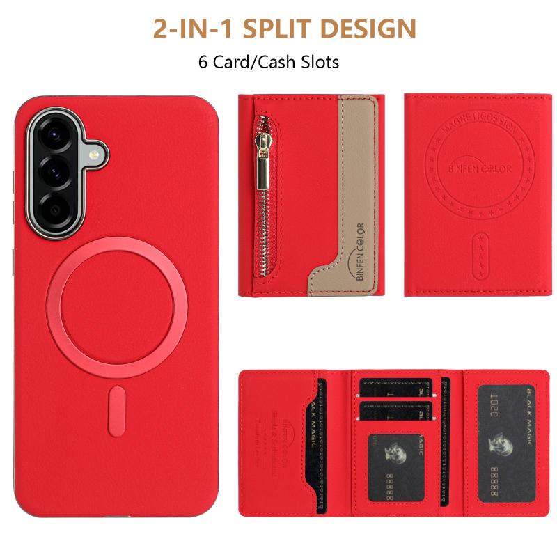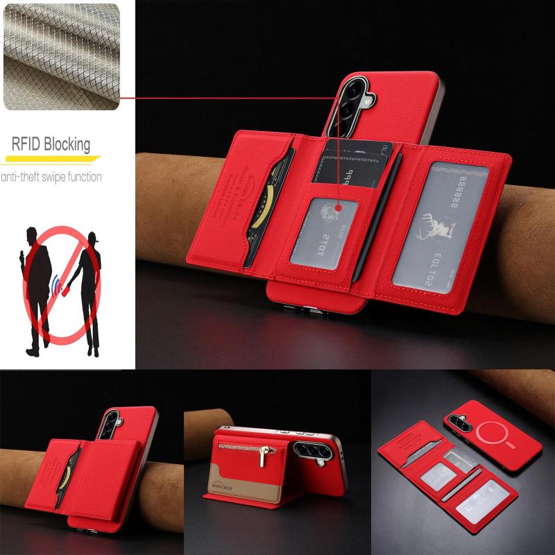For Samsung Galaxy A55 Zipper Horizontal Magnetic Card Bag RFID MagSafe Phone Case(Red)