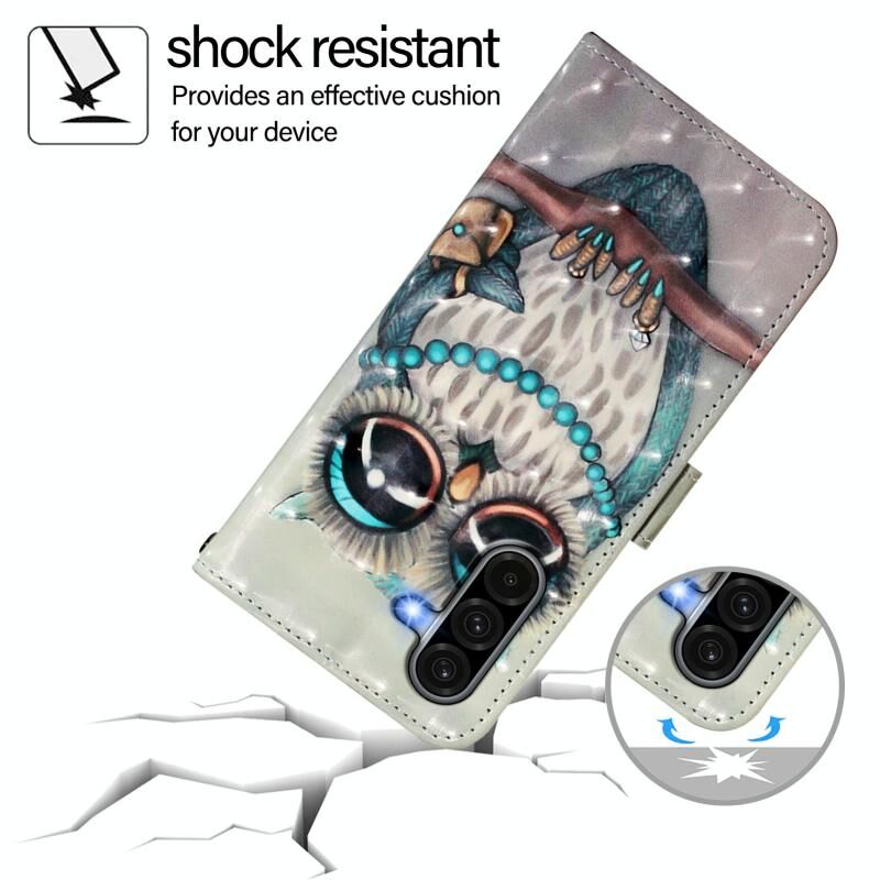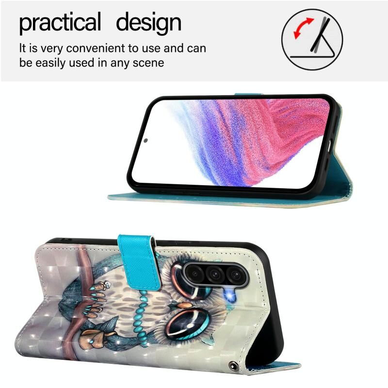 Θήκη τηλεφώνου Samsung Galaxy A56 5G με δερμάτινη οριζόντια αναδίπλωση και τρισδιάστατη ζωγραφική (Γκρι κουκουβάγια)