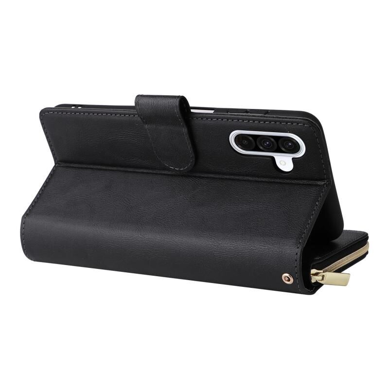 Θήκη τηλεφώνου Samsung Galaxy A56 5G, Δερμάτινη τσάντα πορτοφολιού με φερμουάρ και 9 θήκες για κάρτες (Μαύρο)