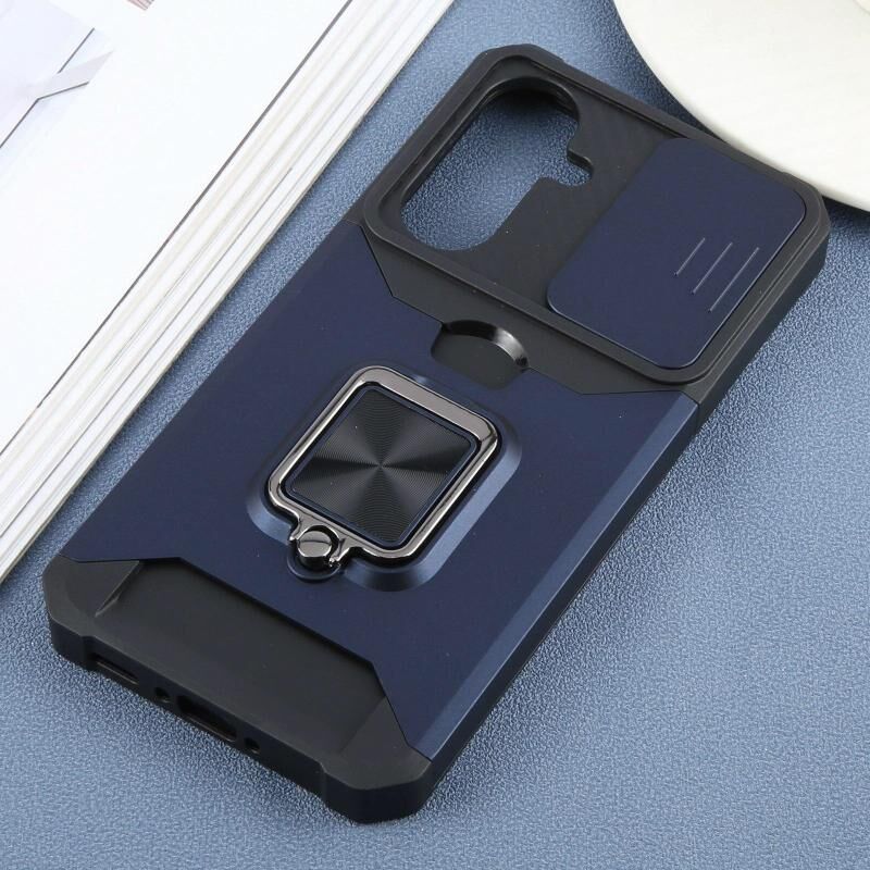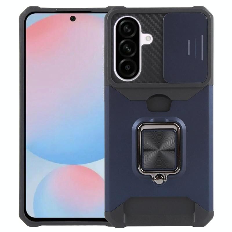 Θήκη κινητού τηλεφώνου Samsung Galaxy A56 5G, Υβριδική από PC και TPU με προστασία κάμερας και θήκη για κάρτες (Μπλε)