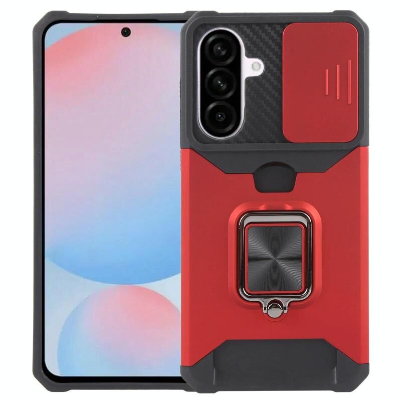 Θήκη κινητού τηλεφώνου Samsung Galaxy A56 5G, Υβριδική από PC και TPU με προστασία κάμερας και θήκη για κάρτες (Μπλε)