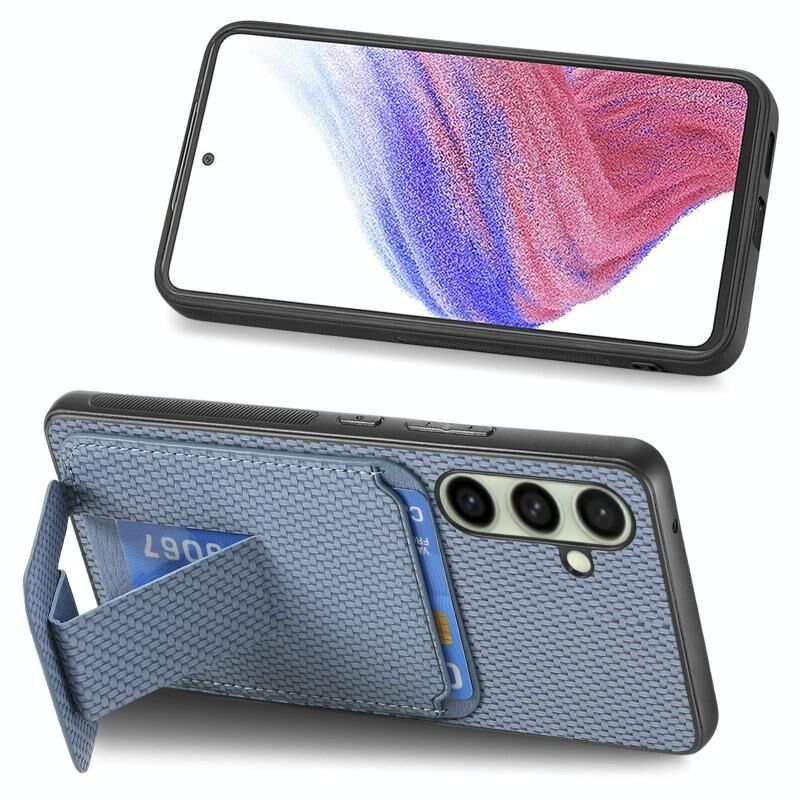 Για Samsung Galaxy A56 5G ινών άνθρακα κάρτας τσάντα τσάντα πτυσσόμενα Stand υπόθεση τηλεφώνου (μπλε)