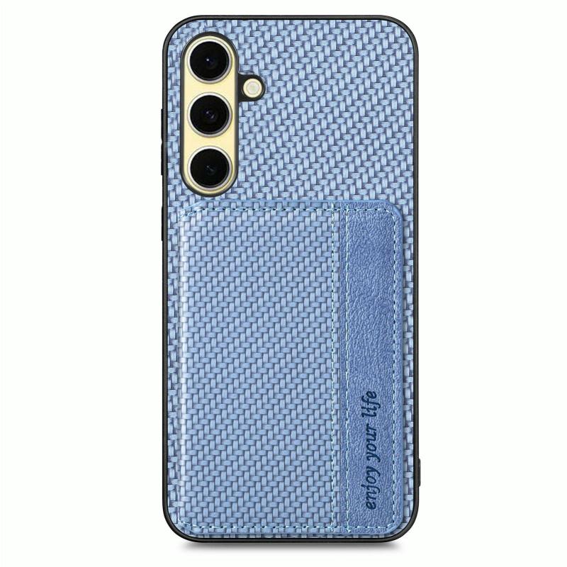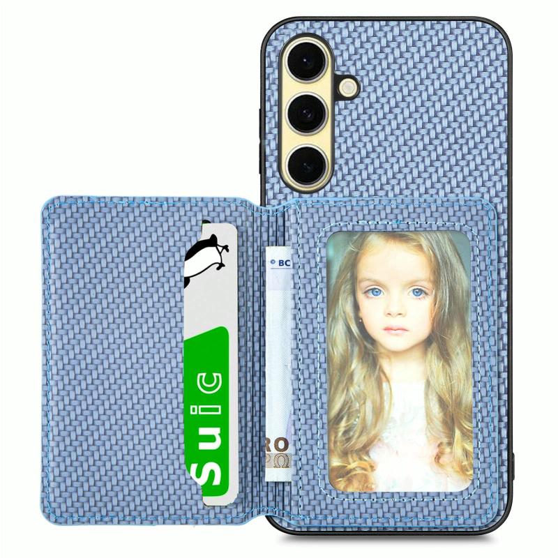 For Samsung Galaxy A56 5G Carbon Fiber Magnetic Card Wallet RFID Blocking Phone Case(Blue)