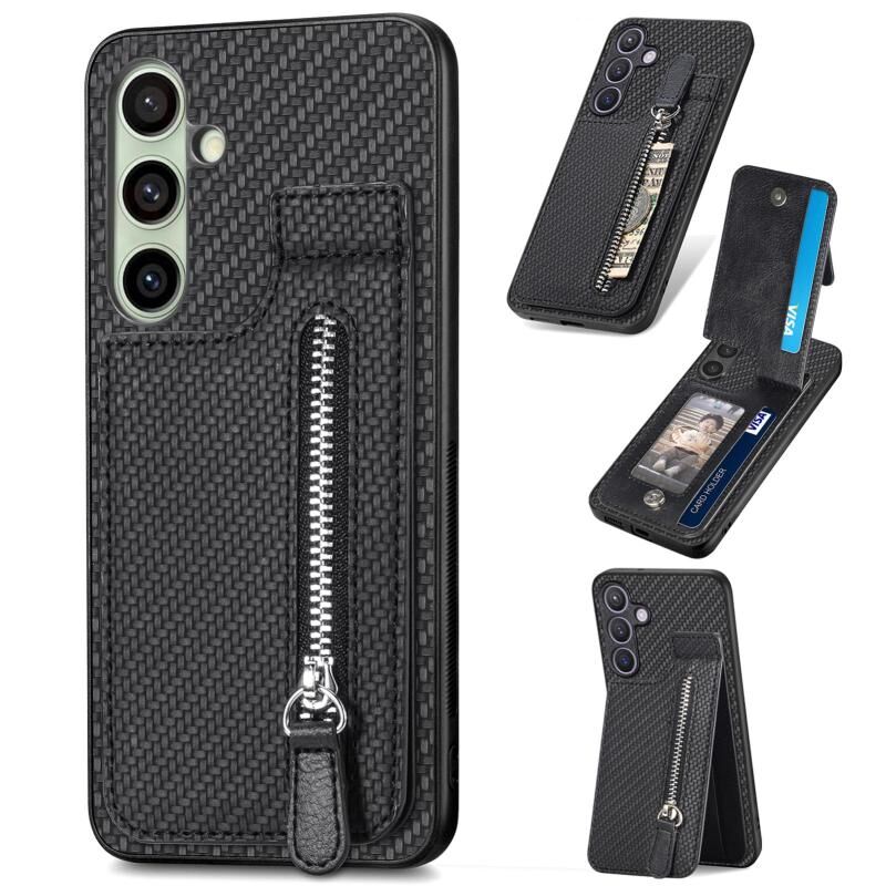 Για Samsung Galaxy A56 5G ινών άνθρακα 5G Κάθετη Flip φερμουάρ τηλέφωνο υπόθεση (μαύρο)