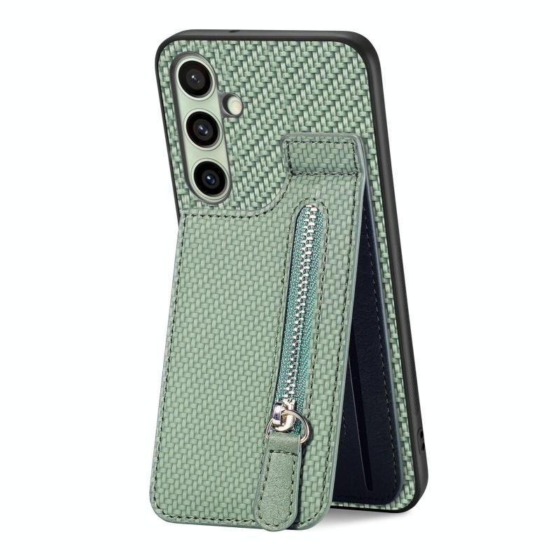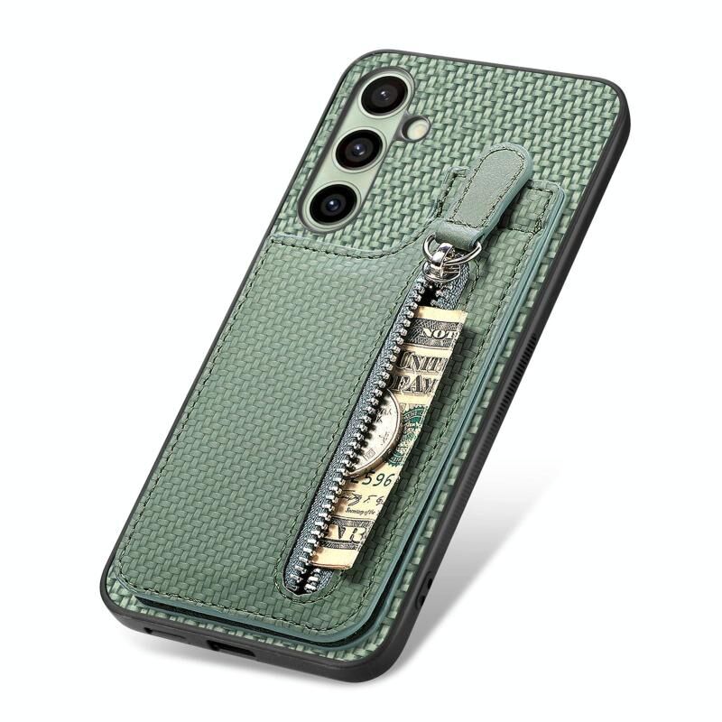 Για Samsung Galaxy A56 5G ινών άνθρακα 5G Κάθετη Flip φερμουάρ υπόθεση τηλεφώνου (πράσινο)