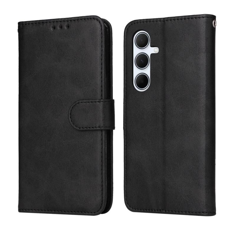 Θήκη τηλεφώνου Samsung Galaxy A56 5G, δερμάτινη, τύπου flip, με υφή μοσχαρίσιου δέρματος (Μαύρο)
