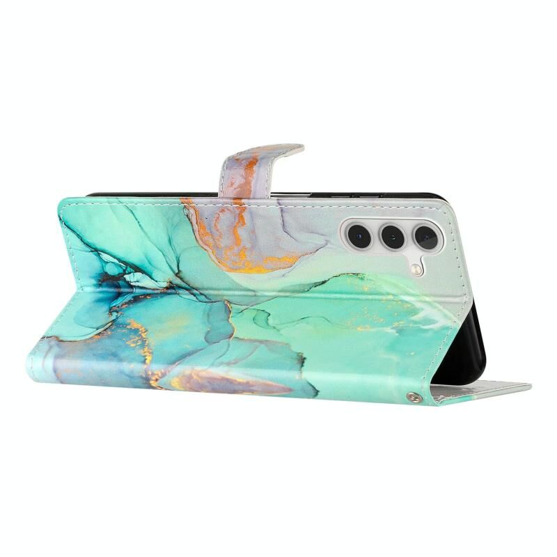 Θήκη τηλεφώνου Samsung Galaxy A56 5G από δέρμα με έγχρωμο σχέδιο (Μπλε Πεταλούδα)