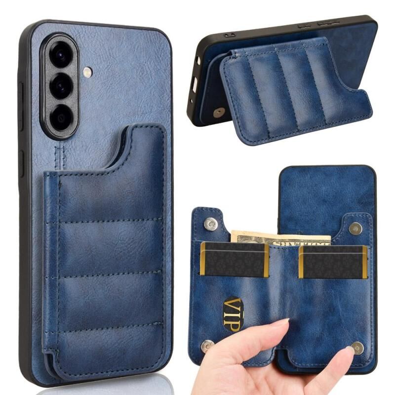 For Samsung Galaxy A56 5G Cow Pattern Sewing Card Bag Phone Case(Blue)