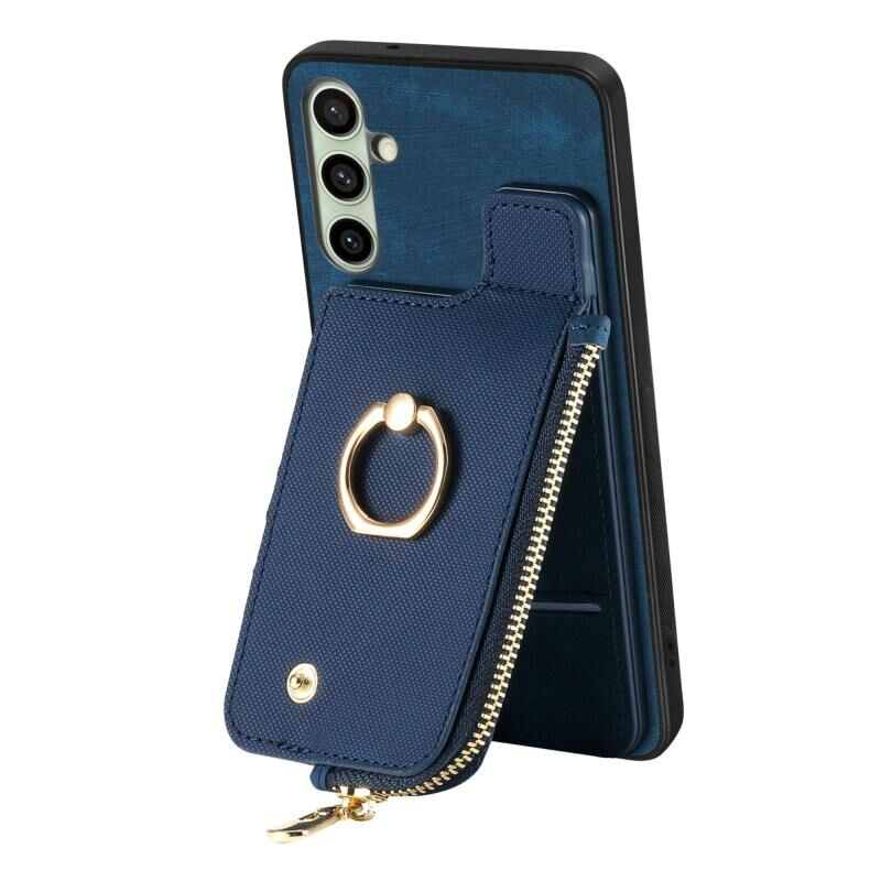 Για Samsung Galaxy A56 5G Cross Δερμάτινο δαχτυλίδι κάθετη φερμουάρ πορτοφόλι πίσω υπόθεση τηλεφώνου (μπλε)