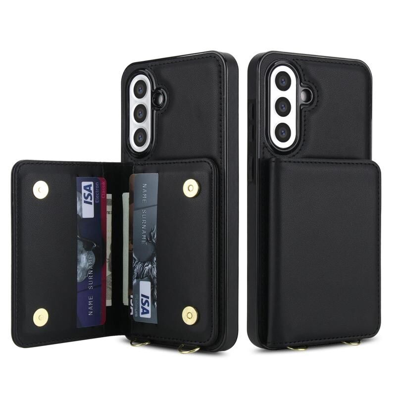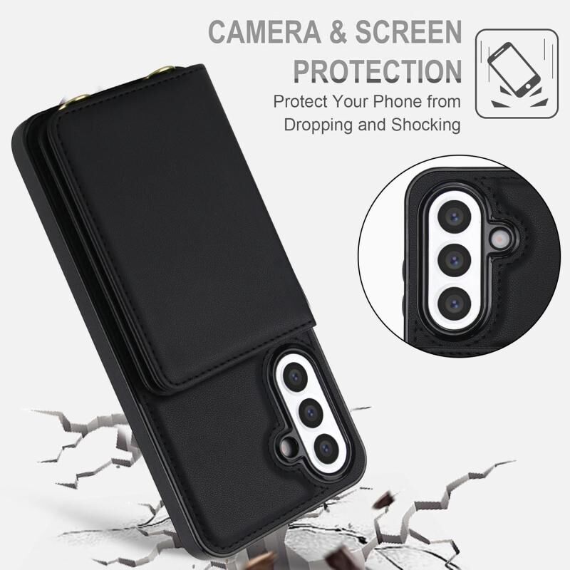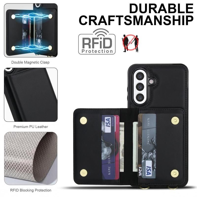 For Samsung Galaxy A56 5G Crossbody Dual-buckle Wallet RFID Back Leather Phone Case(Black)