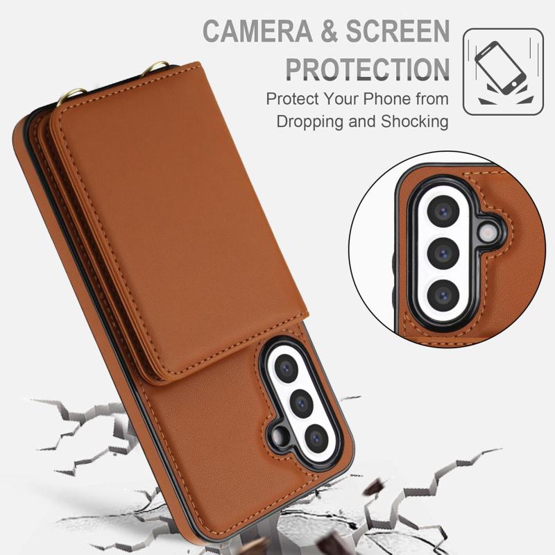For Samsung Galaxy A56 5G Crossbody Dual-buckle Wallet RFID Back Leather Phone Case(Brown)