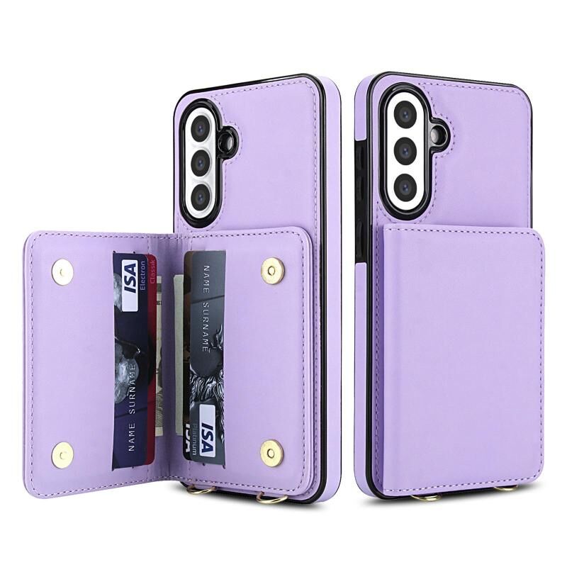 For Samsung Galaxy A56 5G Crossbody Dual-buckle Wallet RFID Back Leather Phone Case(Light Purple)