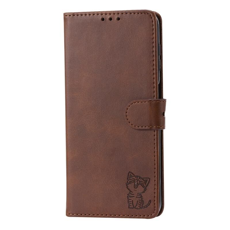 Θήκη τηλεφώνου Samsung Galaxy A56 5G, δερμάτινη, με ανάγλυφο σχέδιο χαρούμενης γάτας (Κόκκινη)