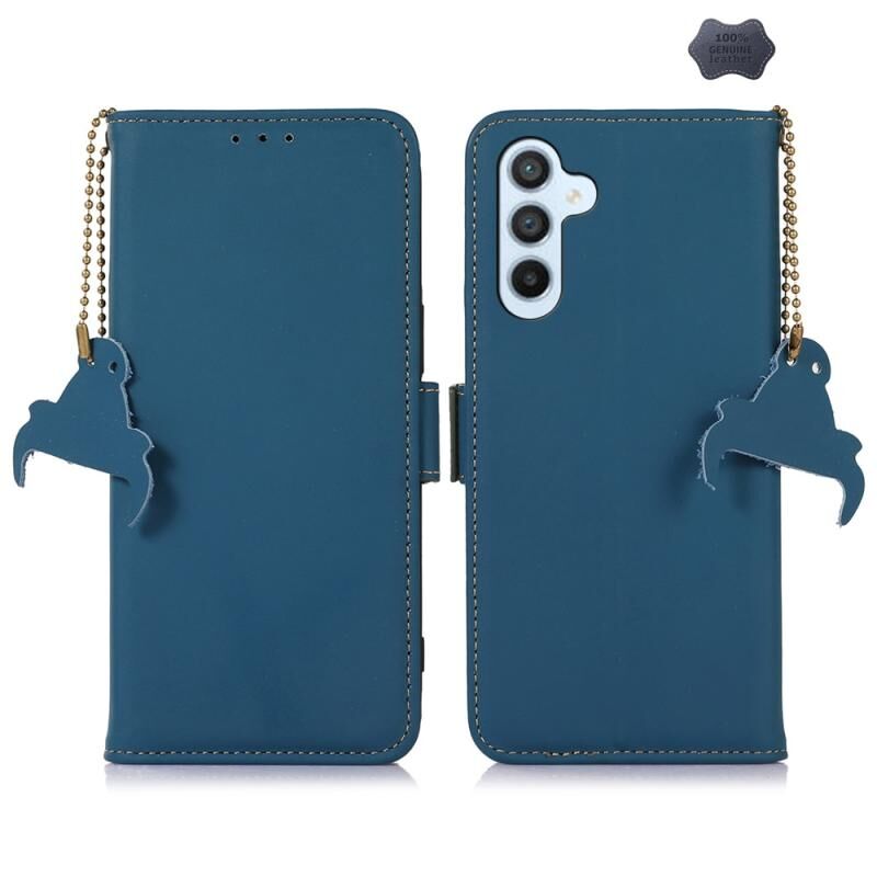 Θήκη τηλεφώνου Samsung Galaxy A56 5G από γνήσιο δέρμα με μαγνητικό κλείσιμο και προστασία RFID (Μπλε)