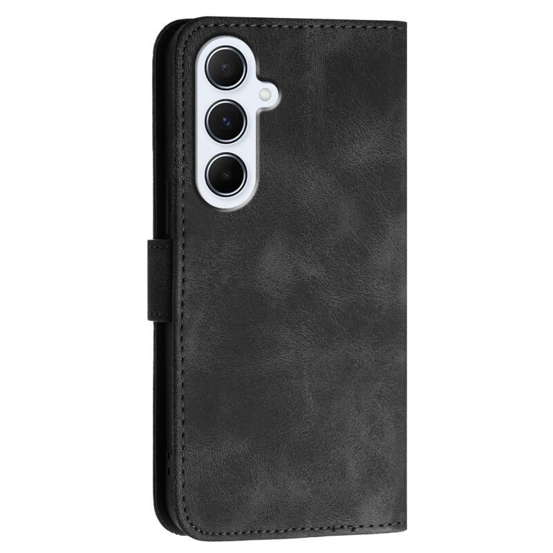 Θήκη τηλεφώνου Samsung Galaxy A56 5G από δέρμα με ανάγλυφο σχέδιο πλέγματος και πεταλούδας, με κορδόνι (Σκούρο Μπλε)
