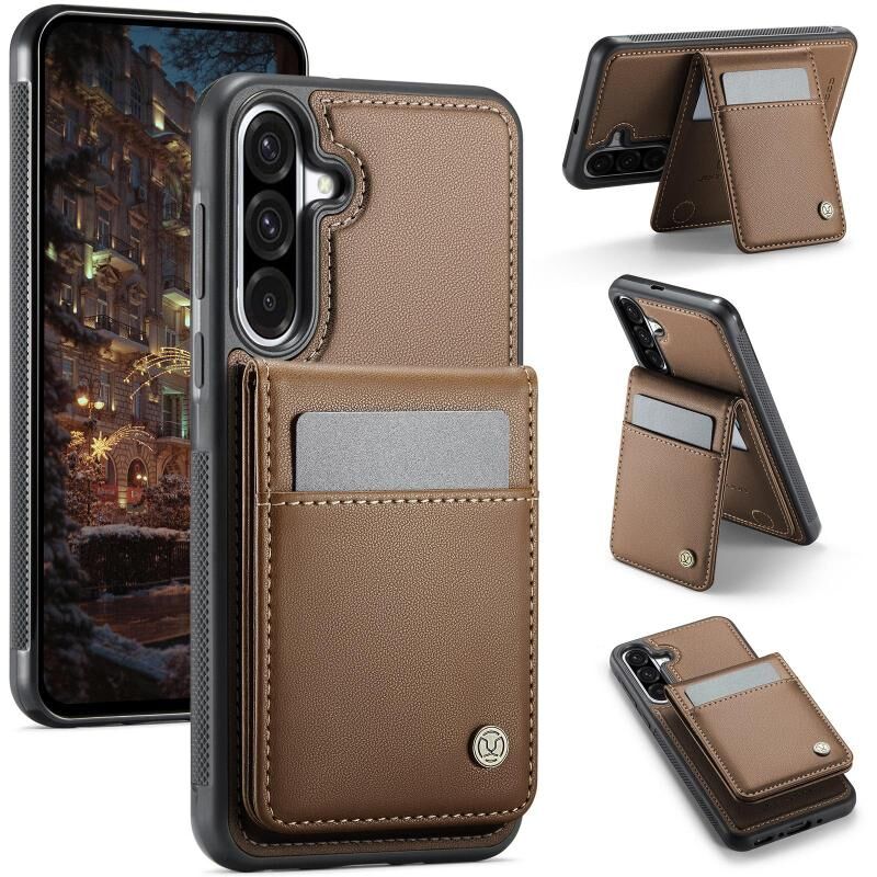 For Samsung Galaxy A56 5G JEEHOOD J06 British Style RFID MagSafe Card Bag PU Phone Case(Brown) (JEEHOOD)