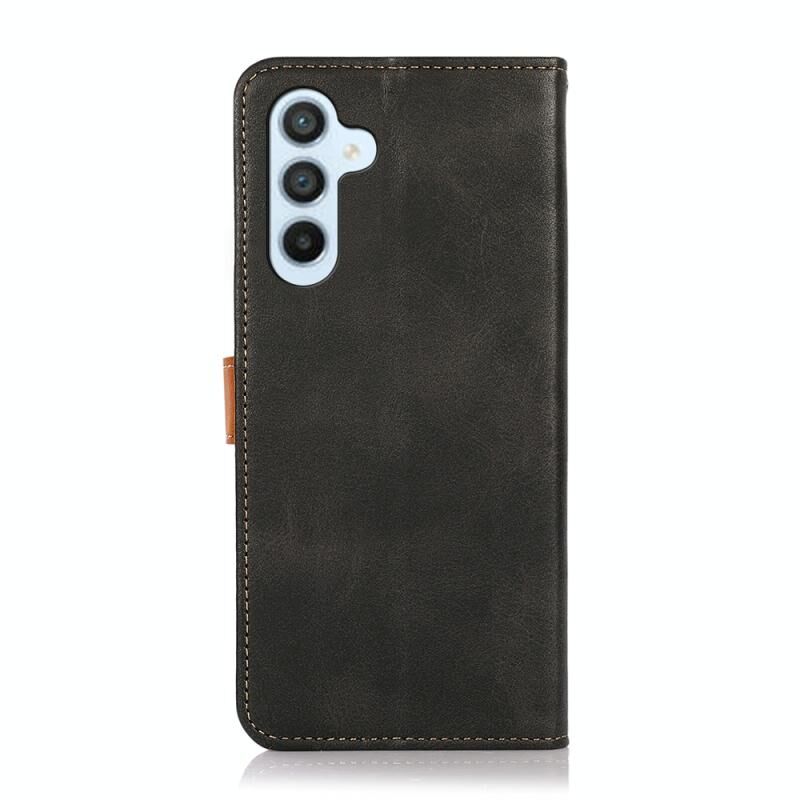 Θήκη τηλεφώνου Samsung Galaxy A56 5G KHAZNEH Δερμάτινη με υφή δέρματος αγελάδας διχρωμίας, τύπου flip (Μαύρο)