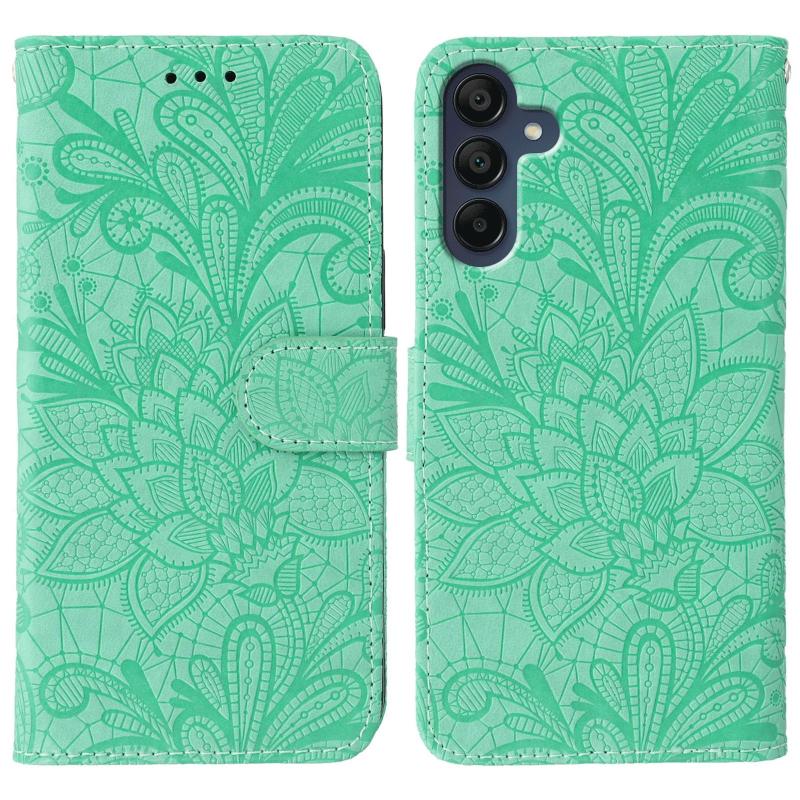 For Samsung Galaxy A56 5G Lace Flower Embossing Flip Leather Phone Case(Green)