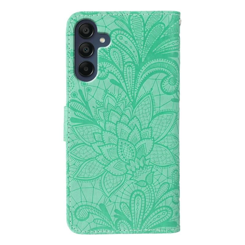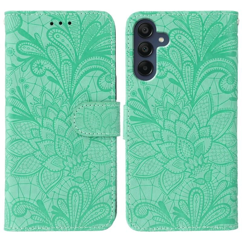 Θήκη τηλεφώνου Samsung Galaxy A56 5G, δερμάτινη, τύπου flip, με ανάγλυφο σχέδιο δαντέλας λουλουδιών (Γκρι)