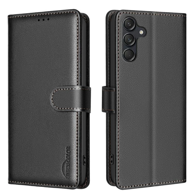 Θήκη τηλεφώνου δερμάτινη με υφή λυτσί για Samsung Galaxy A56 5G, με προστασία RFID κατά της κλοπής (Μαύρο)