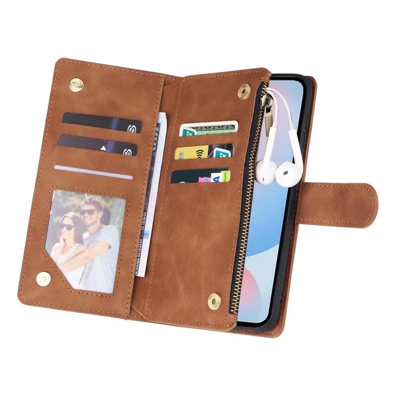 3. Θήκη πορτοφολιού με φερμουάρ και κάρτες: Συνδυασμός πορτοφολιού και θήκης κινητού τηλεφώνου, με υποδοχές για κάρτες ταυτότητας και πιστωτικές κάρτες, μπορεί να χρησιμοποιηθεί ως πορτοφόλι για να κρατάει πολλές πιστωτικές κάρτες, μετρητά, ταυτότητα και χρήματα.