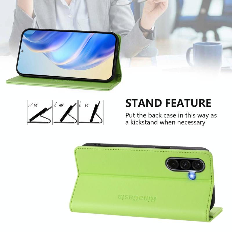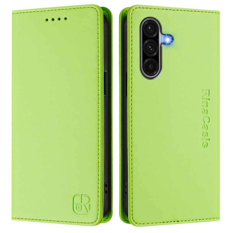 For Samsung Galaxy A56 5G RC01 Dual-Folded Magnetic Suction RFID Leather Phone Case(Grass Green)