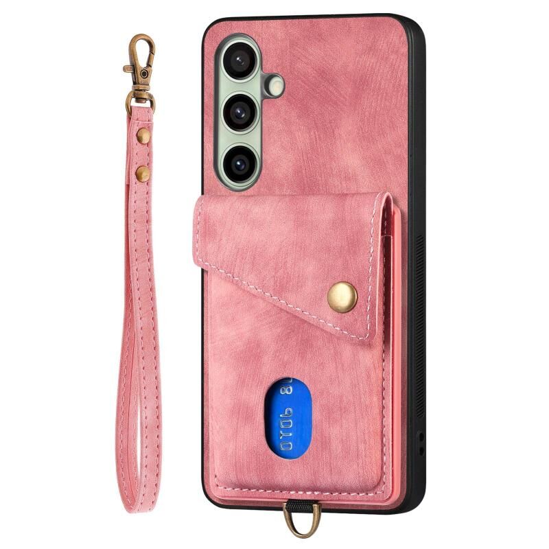 Για Samsung Galaxy A56 5G Ρετρό κάρτα πορτοφόλι πτυσσόμενο δερμάτινη θήκη τηλεφώνου με λουράκι (ρόζ)