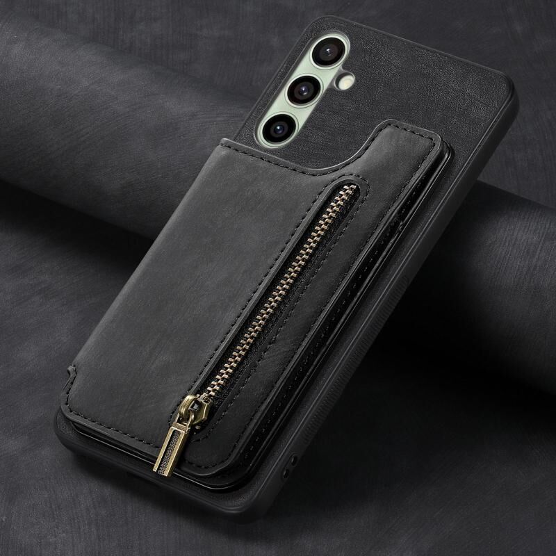 Για Samsung Galaxy A56 5G Retro δέρμα φερμουάρ πορτοφόλι πίσω θήκη τηλεφώνου (μαύρο)
