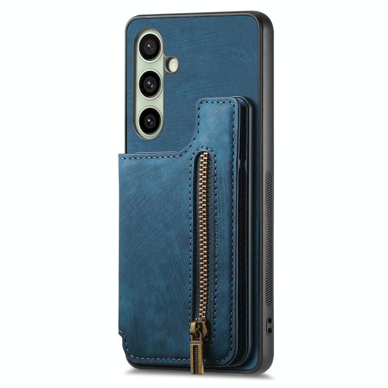 Για Samsung Galaxy A56 5G Retro δέρμα φερμουάρ πορτοφόλι πίσω θήκη τηλεφώνου (μπλε)