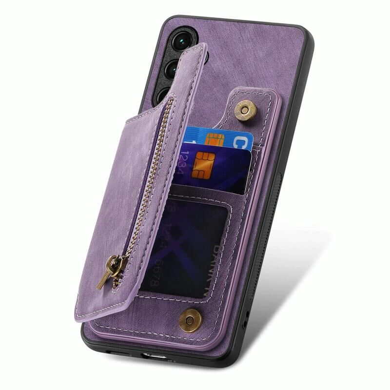 Για Samsung Galaxy A56 5G Retro δέρμα φερμουάρ πορτοφόλι πίσω θήκη τηλεφώνου (μωβ)