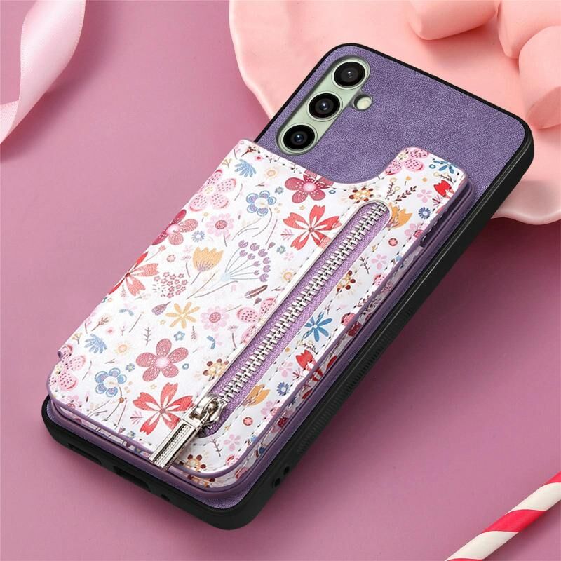 Για Samsung Galaxy A56 5G Ρετρό ζωγραφισμένο φερμουάρ πορτοφόλι πίσω υπόθεση τηλεφώνου (Μωβ)
