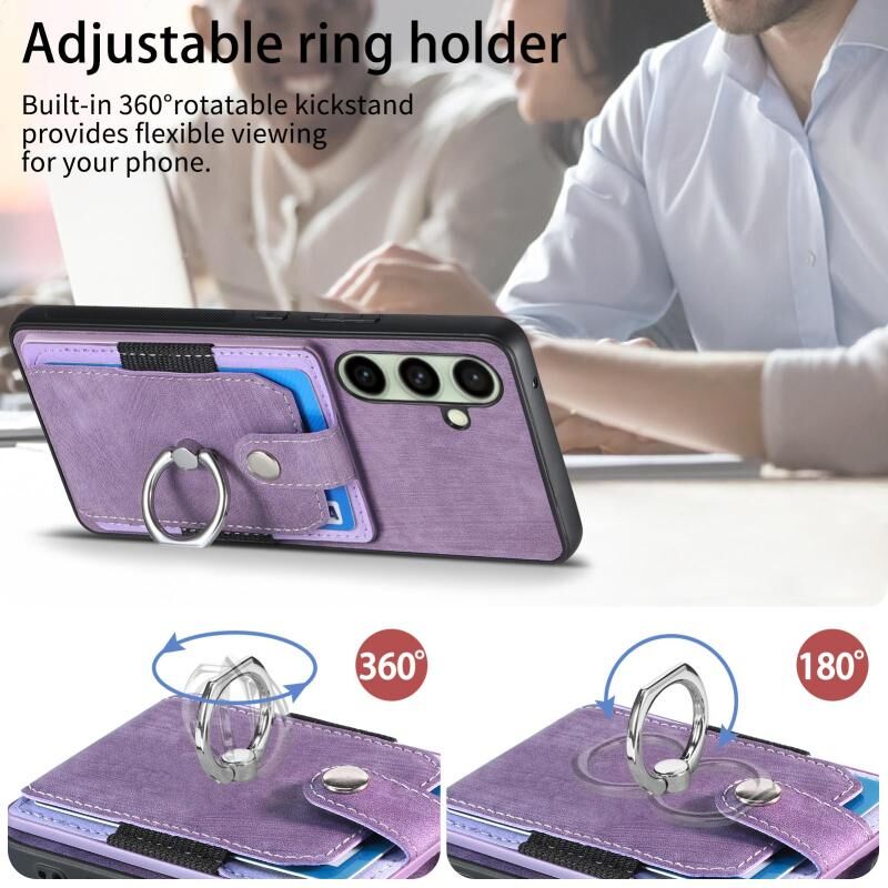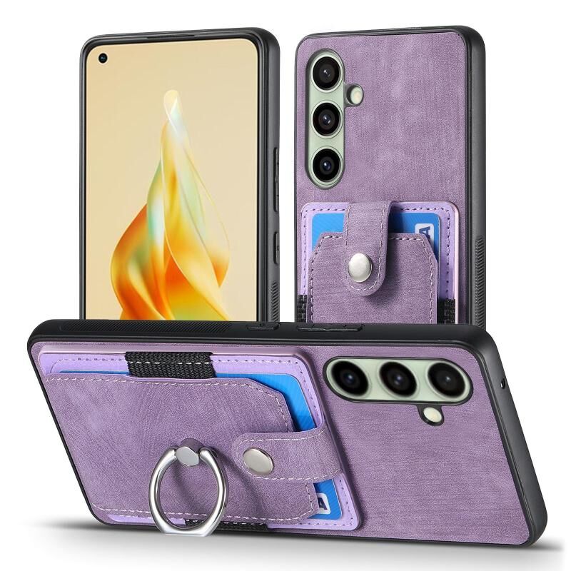 Για το Samsung Galaxy A56 5G Ρετρό δέρμα αίσθηση δαχτυλίδι κάρτας πορτοφόλι υπόθεση τηλεφώνου (μωβ)