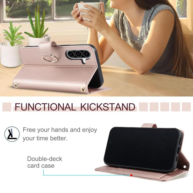 For Samsung Galaxy A56 5G Ring Buckle Rhombic Leather Phone Case(Rose Gold)