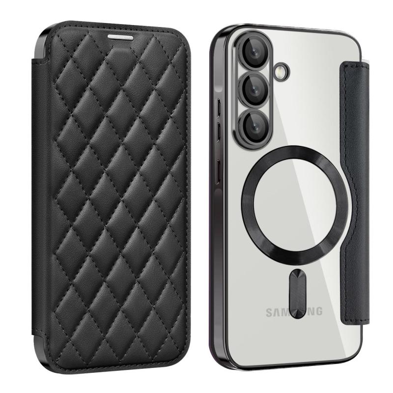 For Samsung Galaxy A56 5G Shield MagSafe RFID Anti-theft Rhombus Leather Phone Case(Black)