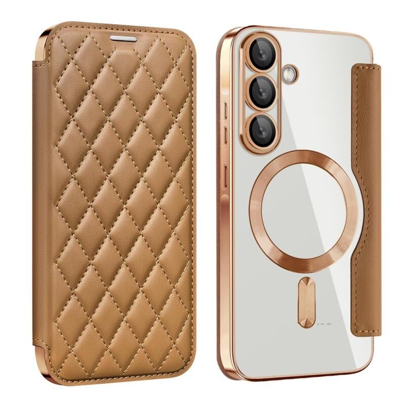 Θήκη κινητού Samsung Galaxy A56 5G Shield MagSafe RFID Anti-theft από δέρμα με ρόμβους (Σκούρο Μπλε)