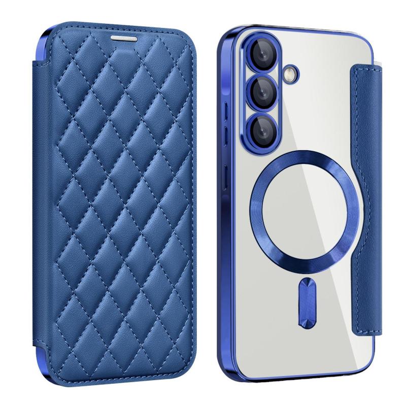 For Samsung Galaxy A56 5G Shield MagSafe RFID Anti-theft Rhombus Leather Phone Case(Dark Blue)