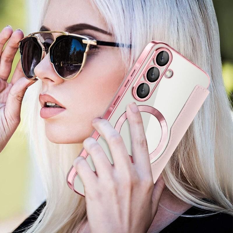 Θήκη κινητού Samsung Galaxy A56 5G Shield MagSafe RFID Anti-theft από δέρμα με ρόμβους (Σκούρο Μπλε)