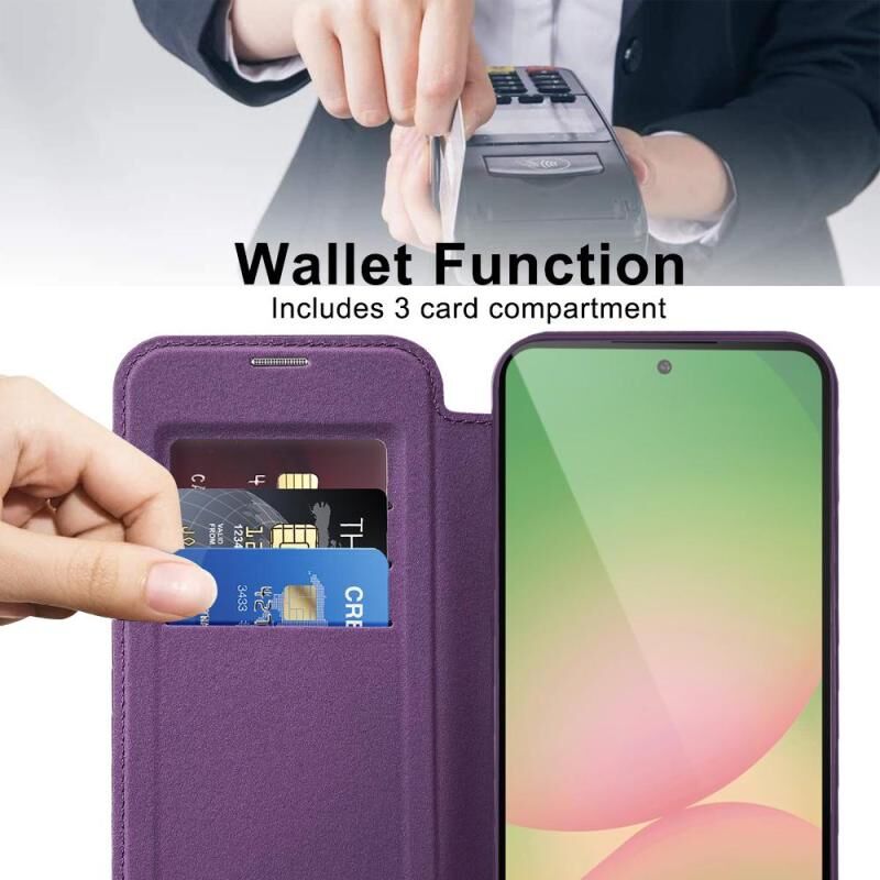 Θήκη κινητού Samsung Galaxy A56 5G Shield MagSafe RFID Anti-theft από δέρμα με ρόμβους (Σκούρο Μπλε)
