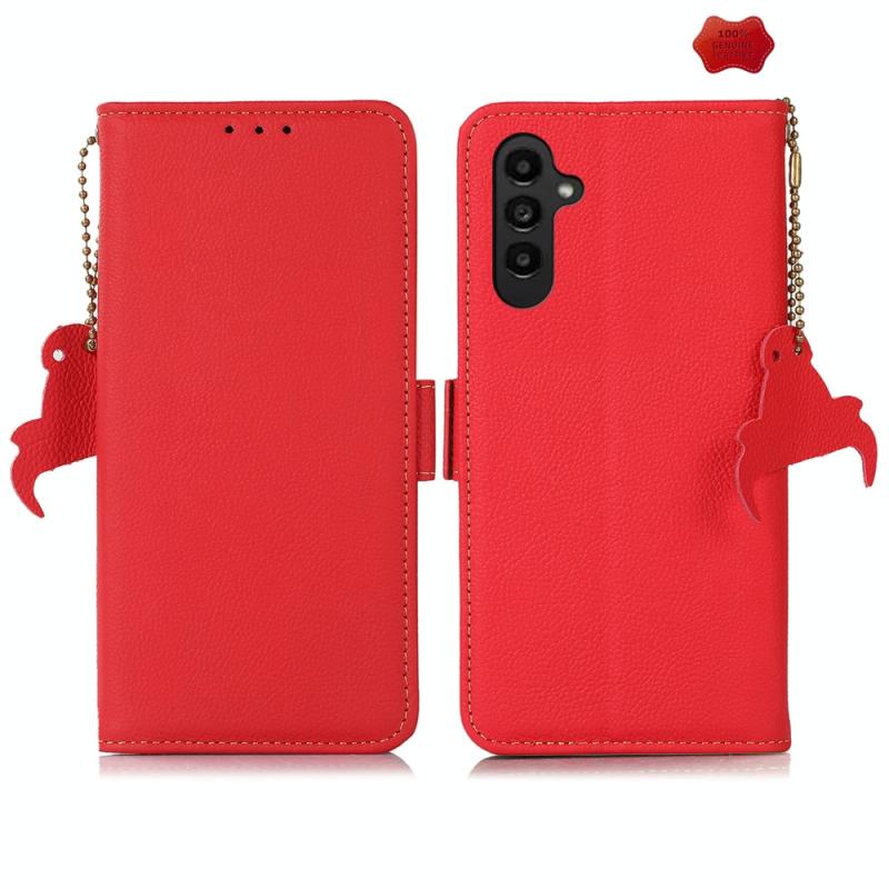 For Samsung Galaxy A56 5G Side-Magnetic TJ Genuine Leather RFID Phone Case(Red)