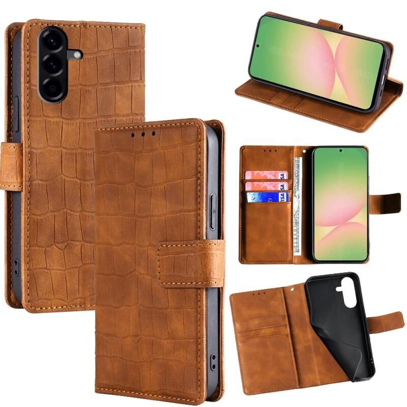 Θήκη τηλεφώνου Samsung Galaxy A56 5G από δέρμα με υφή κροκόδειλου και μαγνητικό κούμπωμα (Μαύρο)